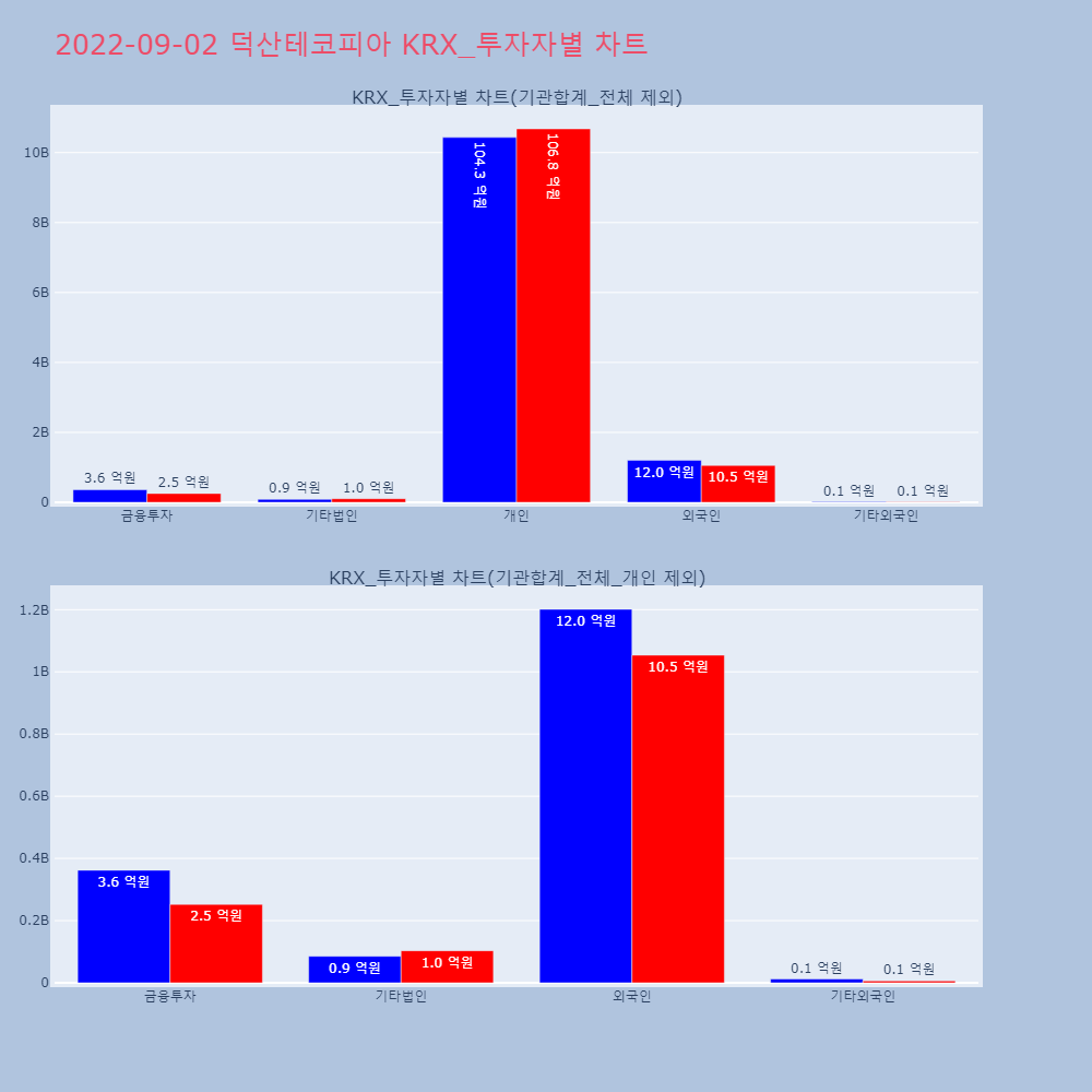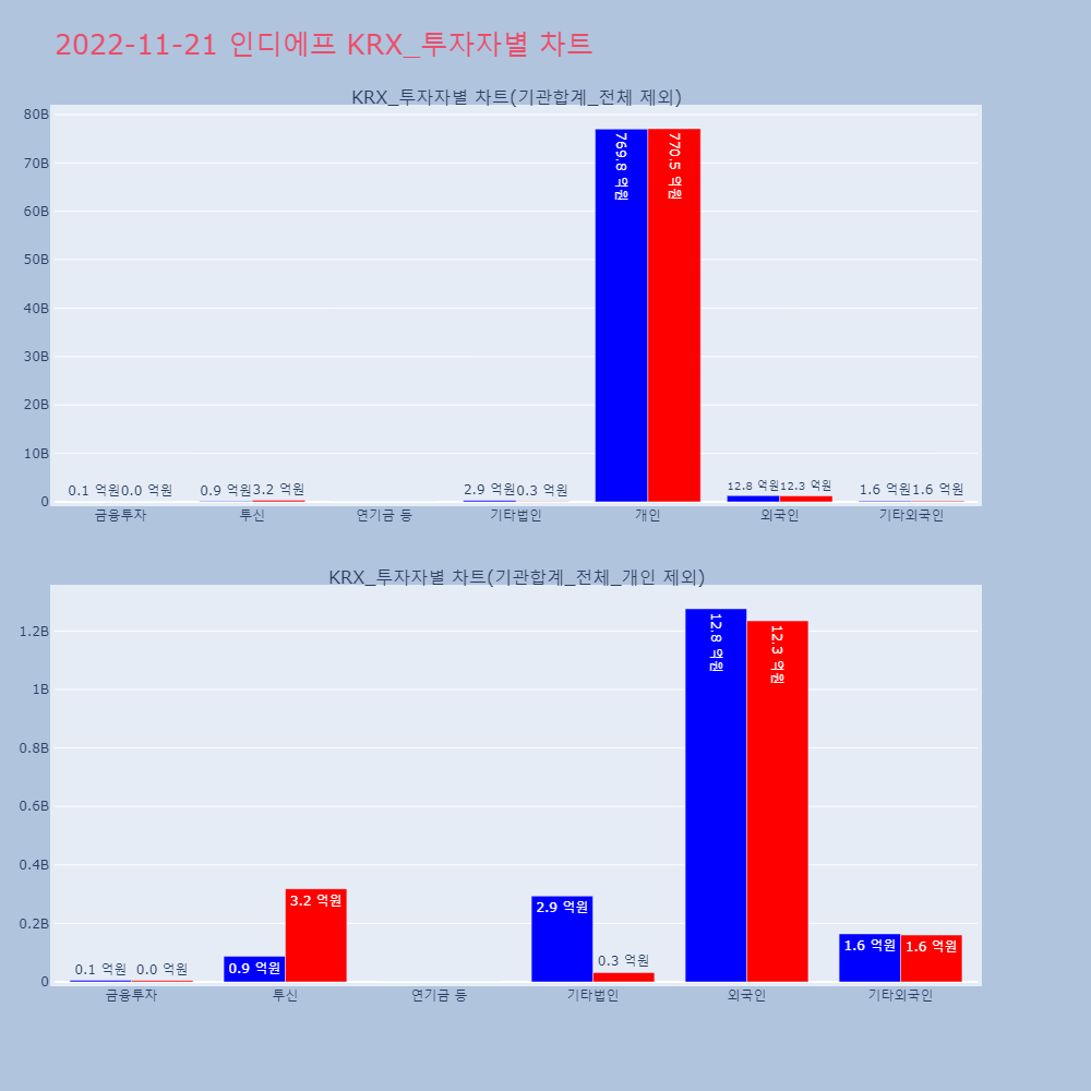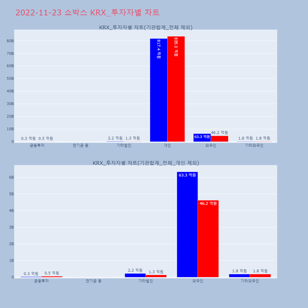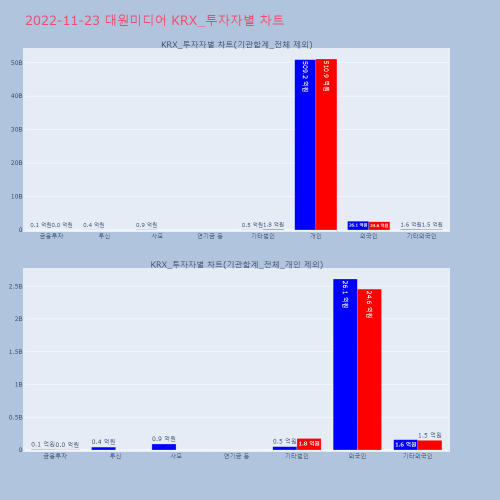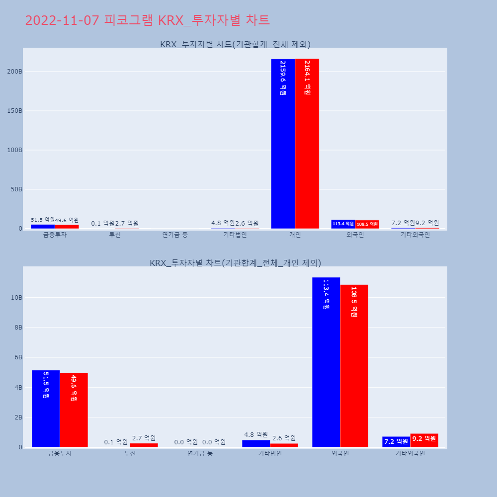 | 투자기관 | 매도량/금액(백) | 매수량/금액(백) | 순매수량/금액(백) |