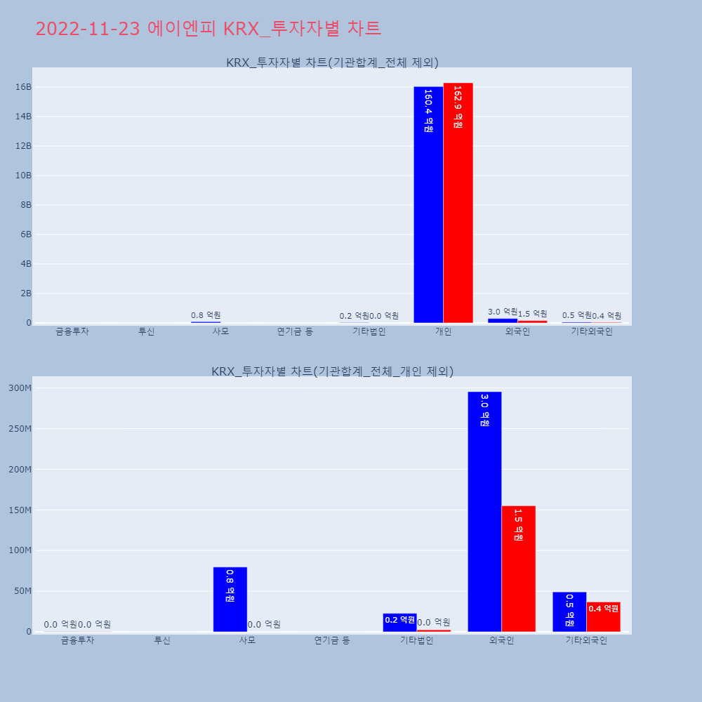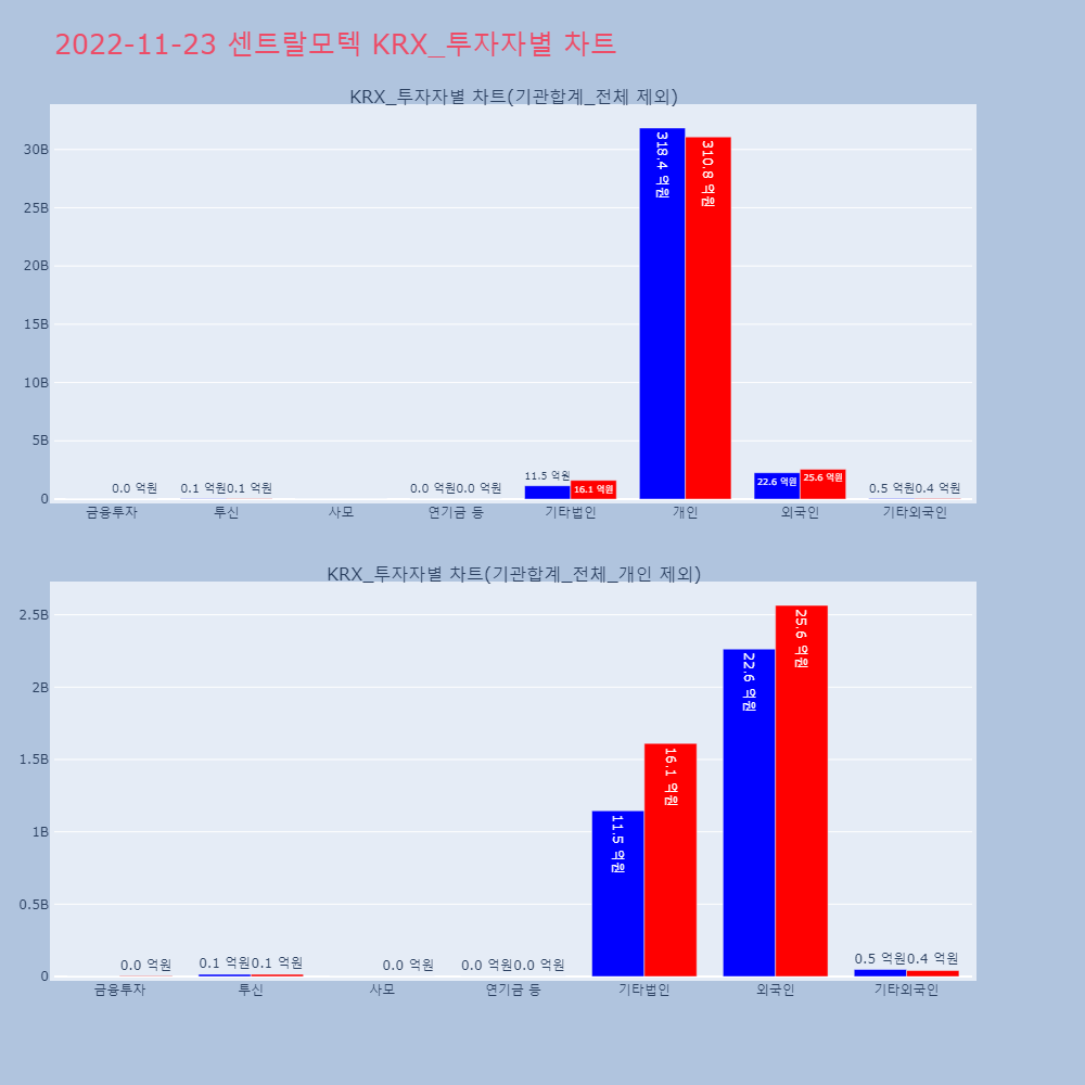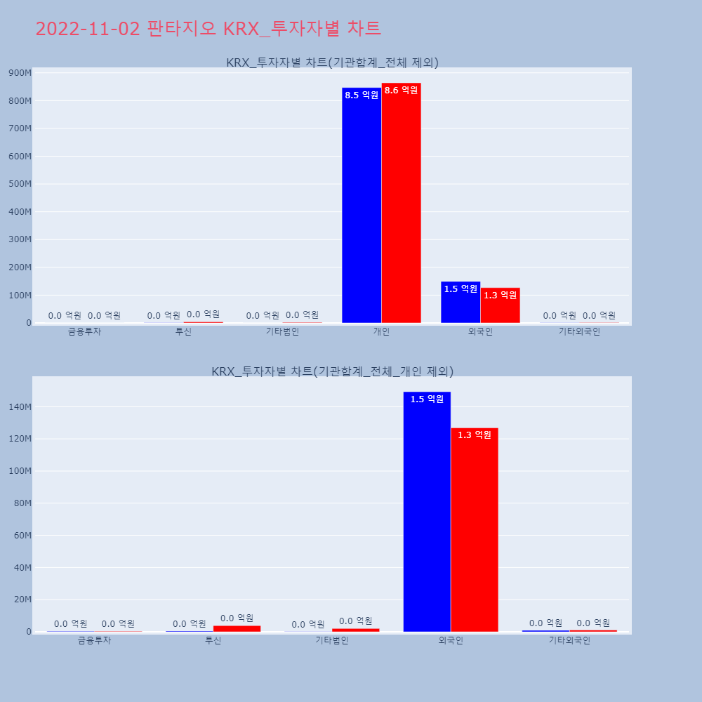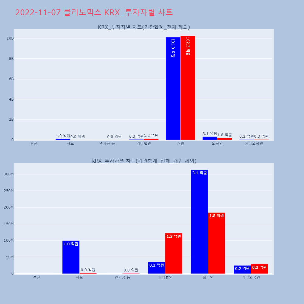 | 투자기관 | 매도량/금액(백) | 매수량/금액(백) | 순매수량/금액(백) |