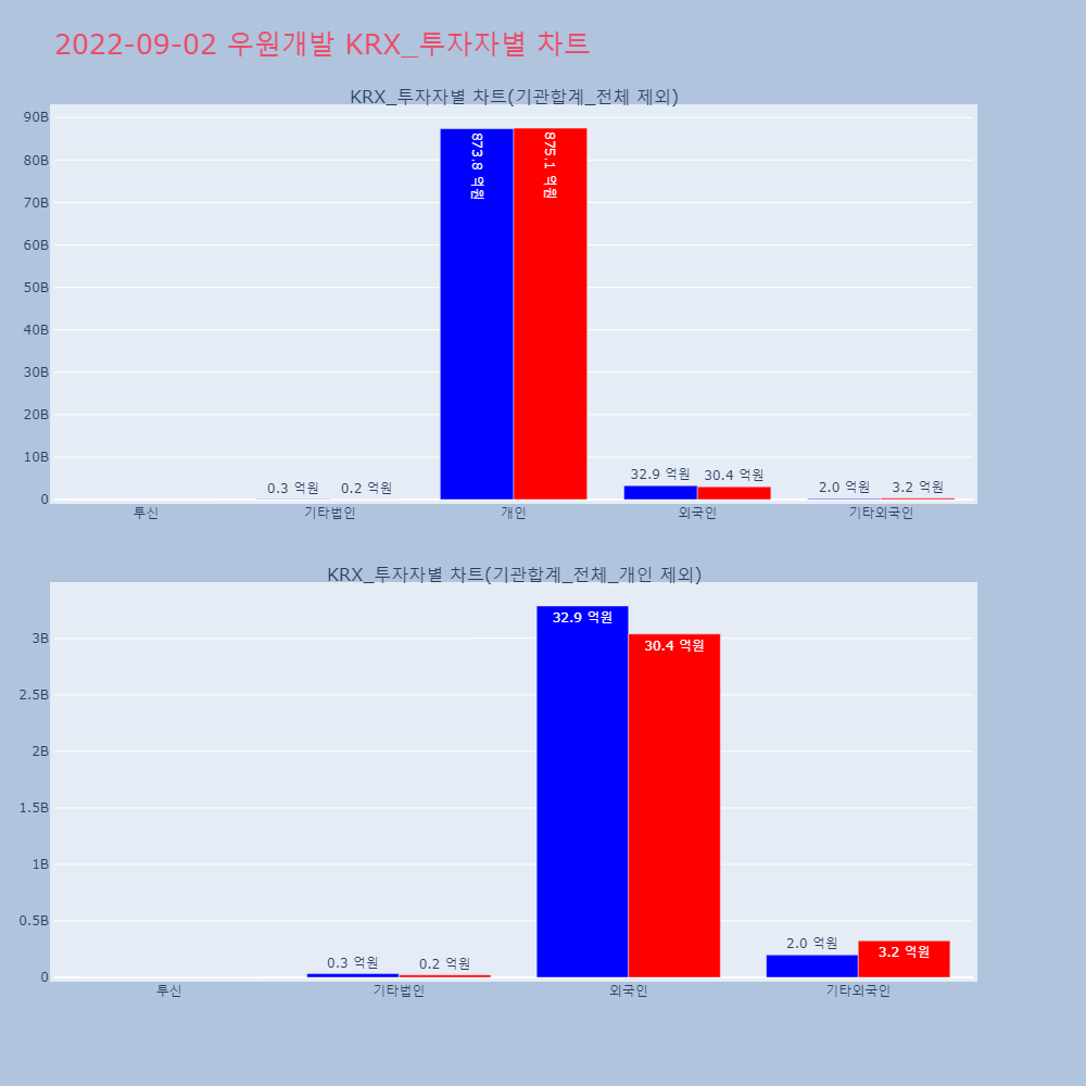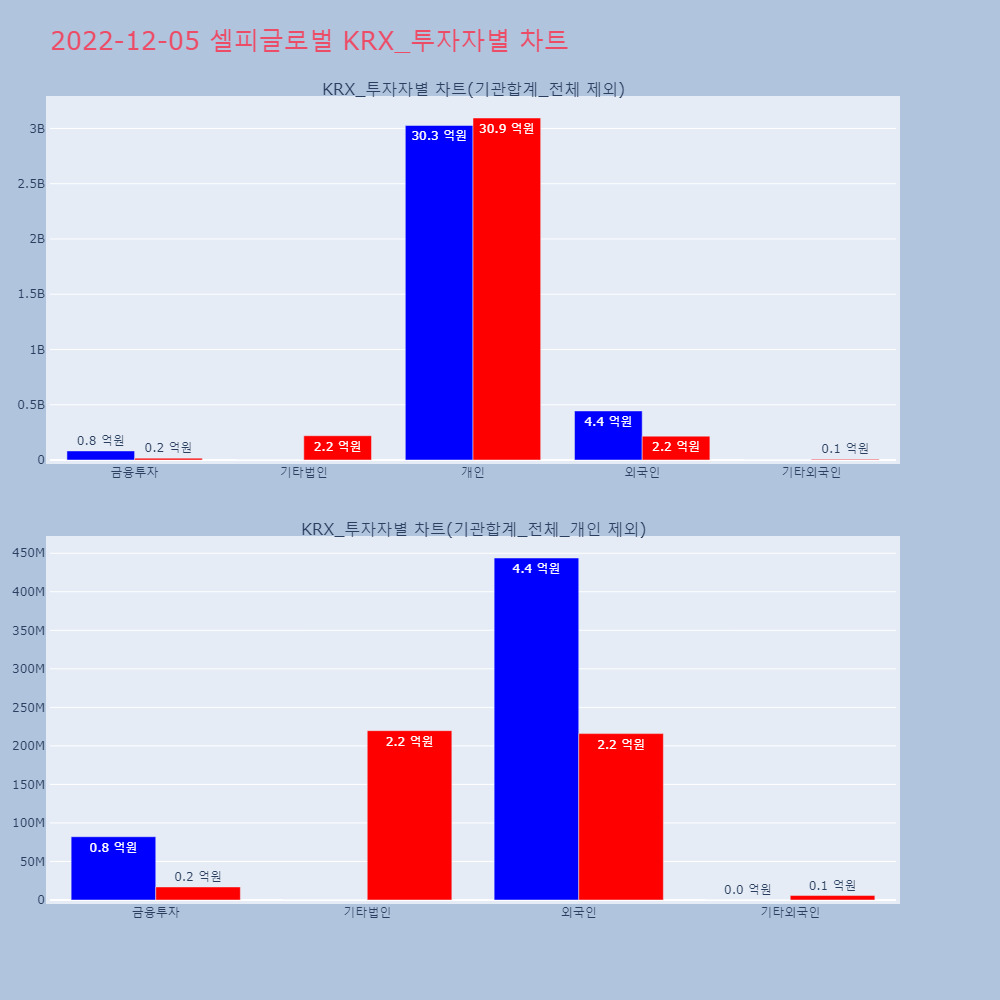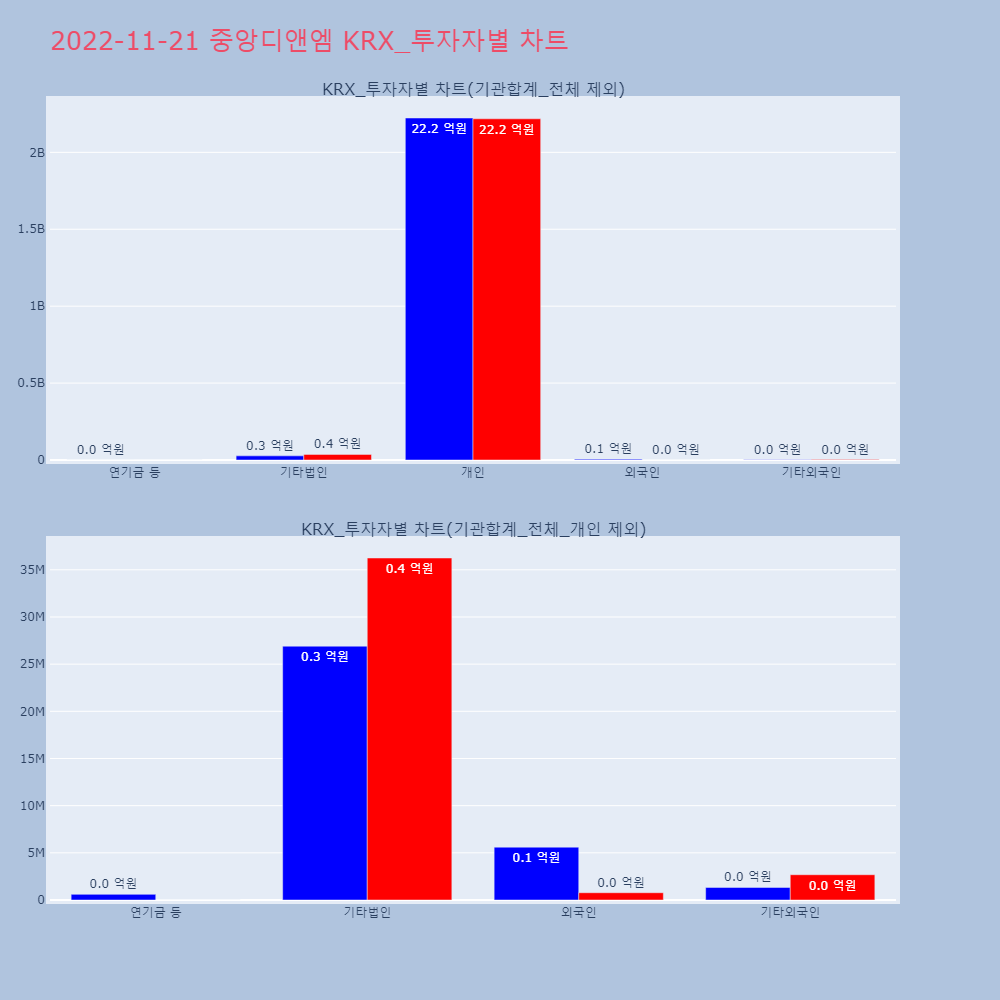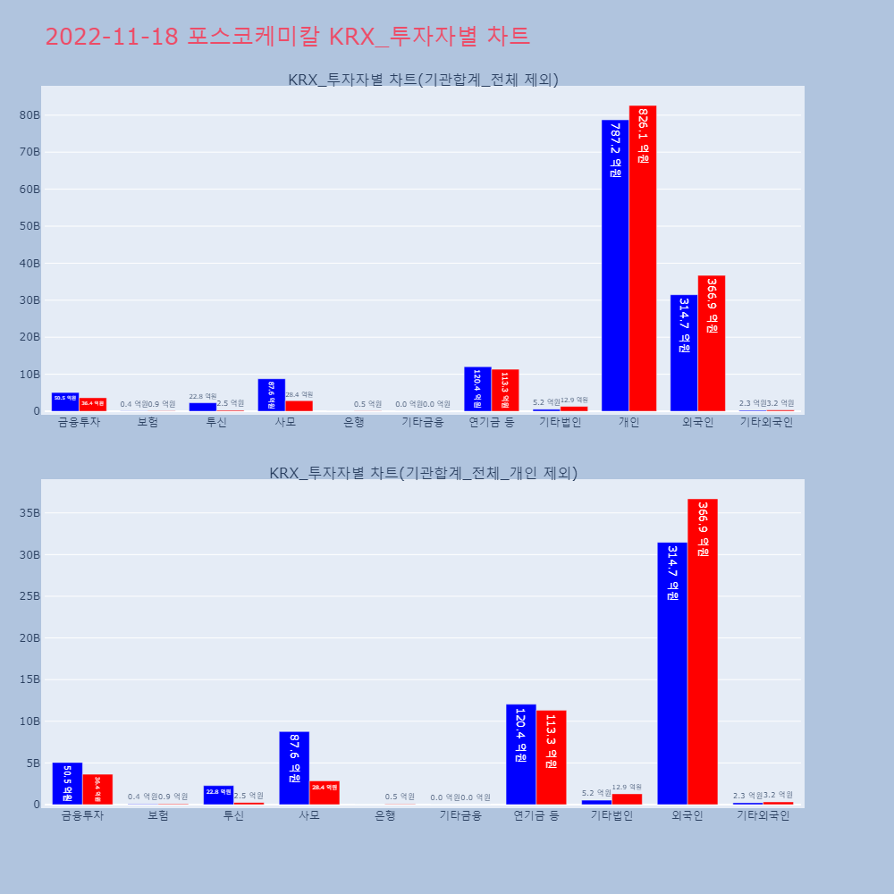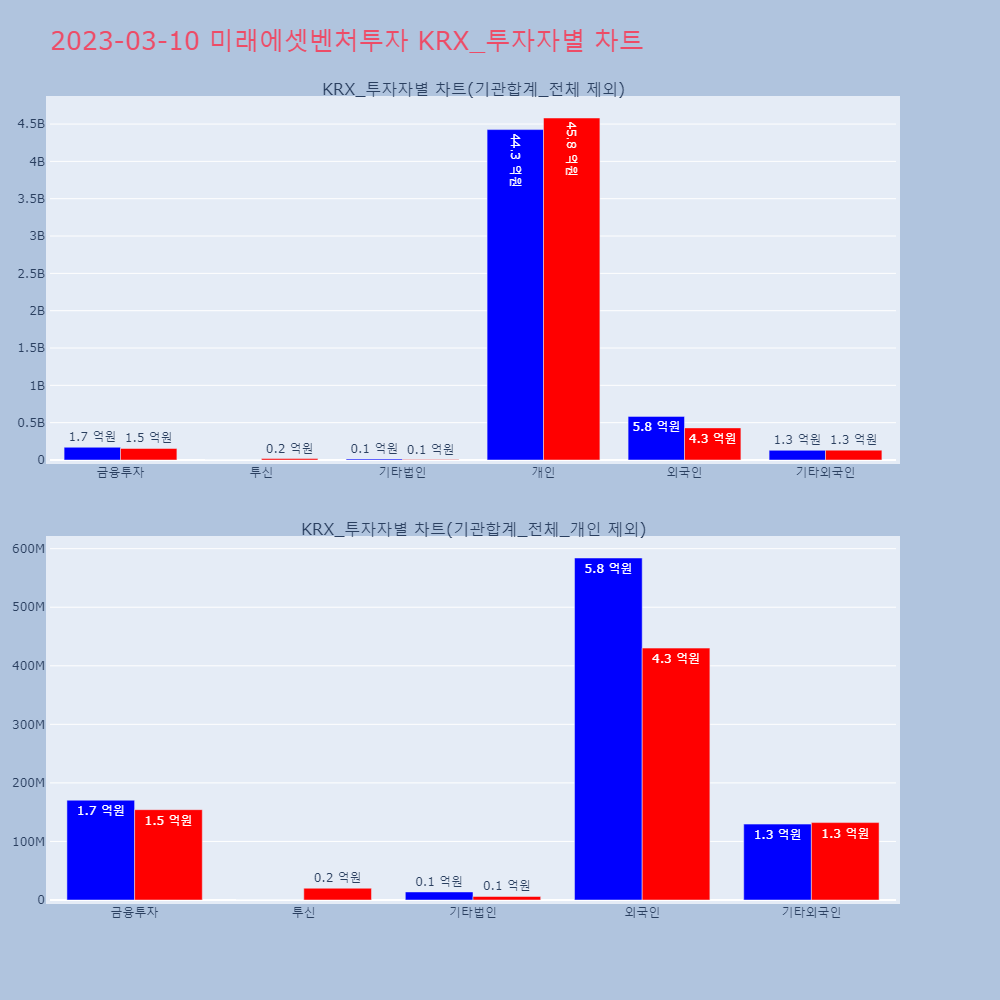 | 투자기관 | 매도량/금액(백) | 매수량/금액(백) | 순매수량/금액(백) |