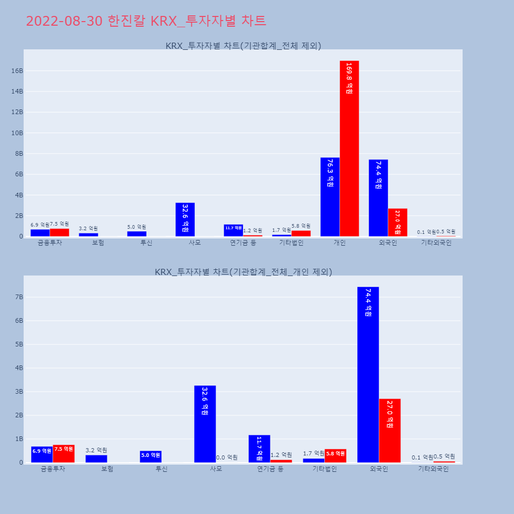 | 투자기관 | 거래량_매도 | 거래량_매수 | 거래량_순매수 | 거래대금_매도 | 거래대금_매수 | 거래대금_순매수 |