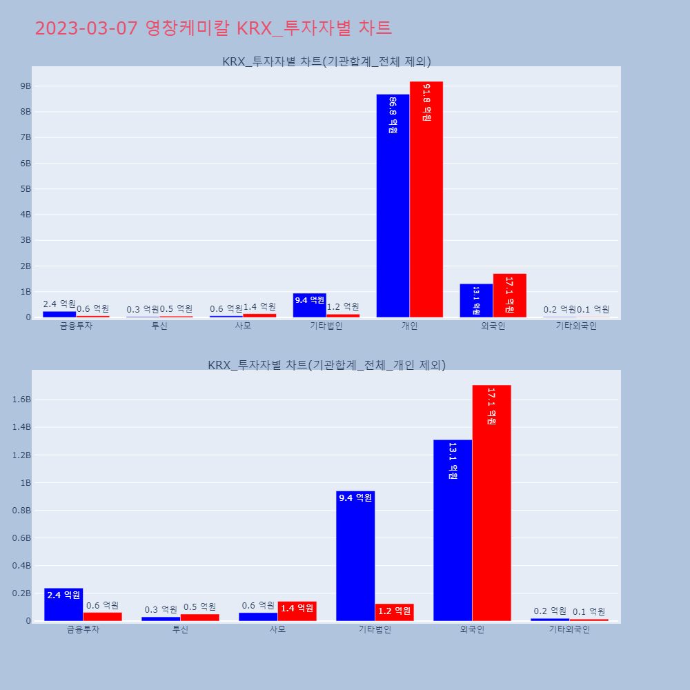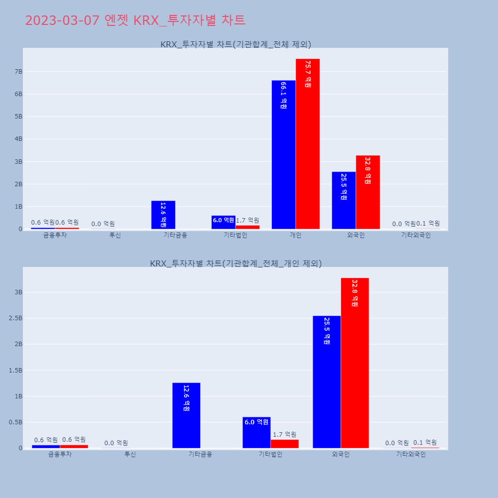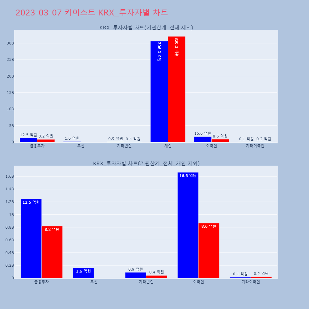 | 투자기관 | 거래량_매도 | 거래량_매수 | 거래량_순매수 | 거래대금_매도 | 거래대금_매수 | 거래대금_순매수 |