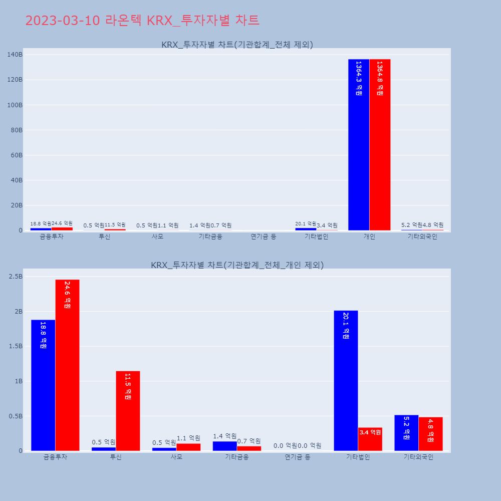 | 투자기관 | 매도량/금액(백) | 매수량/금액(백) | 순매수량/금액(백) |