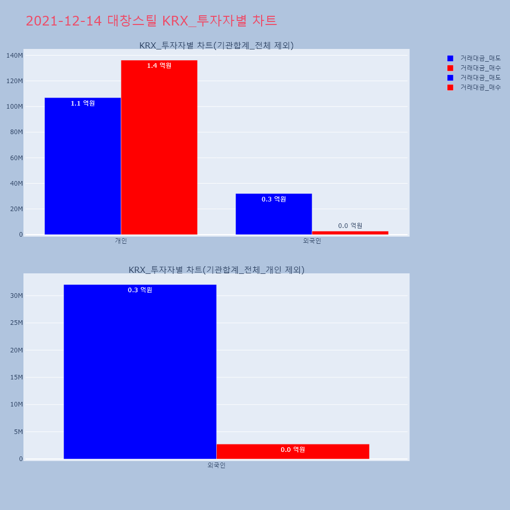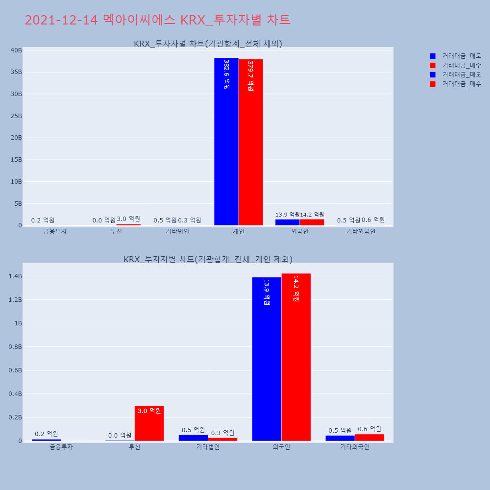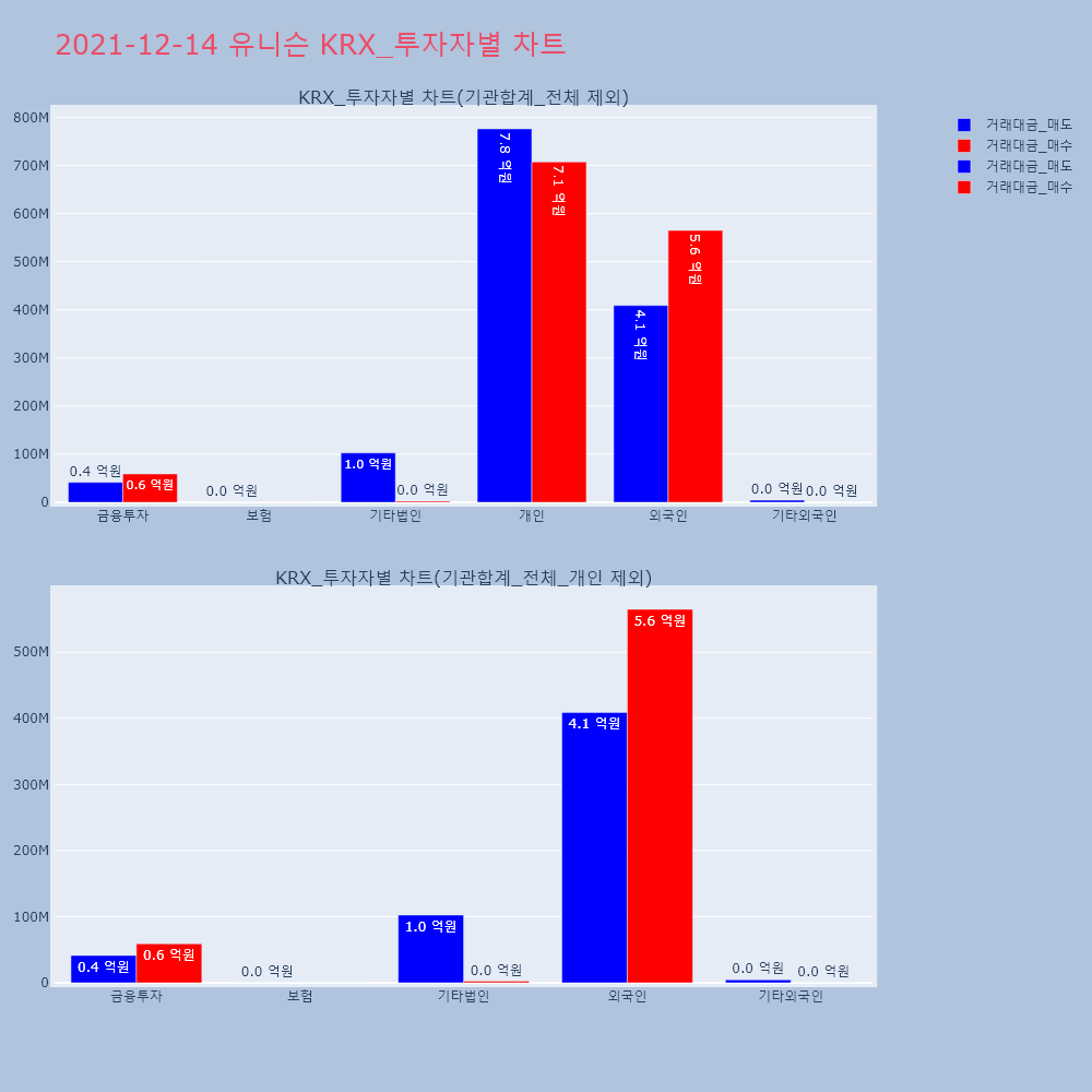 | 투자기관 | 거래량_매도 | 거래량_매수 | 거래량_순매수 | 거래대금_매도 | 거래대금_매수 | 거래대금_순매수 |