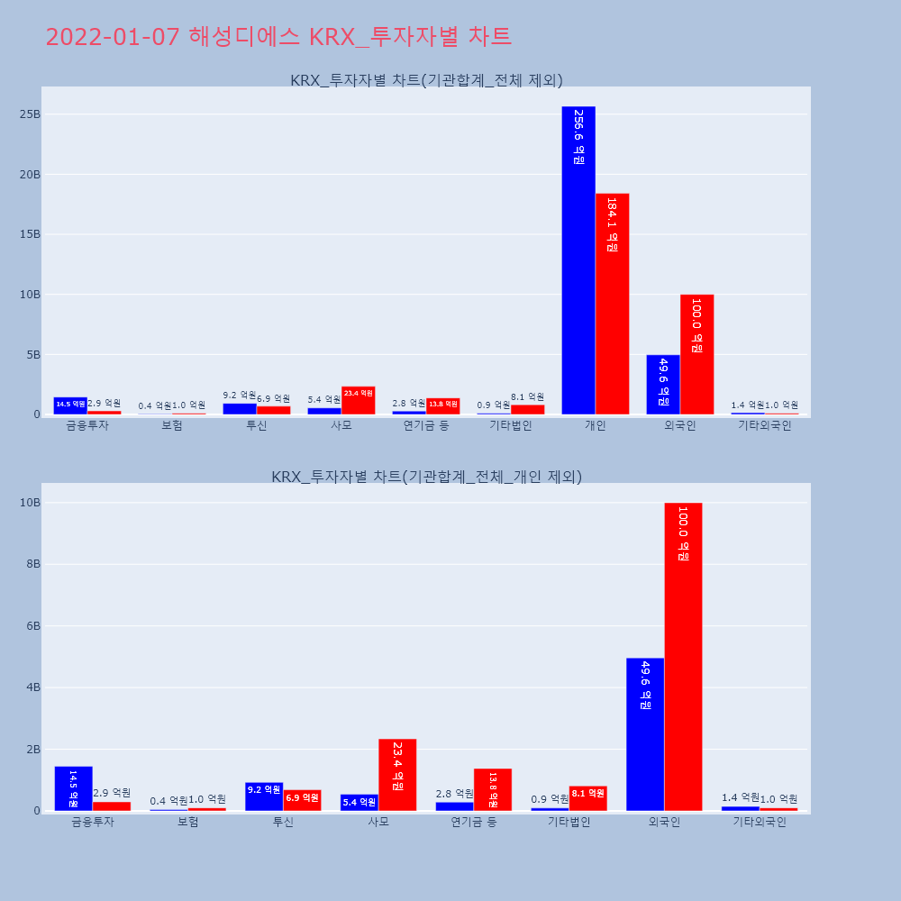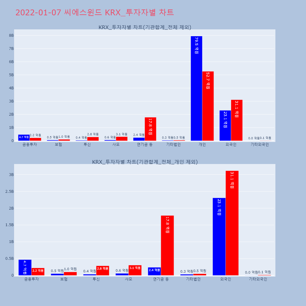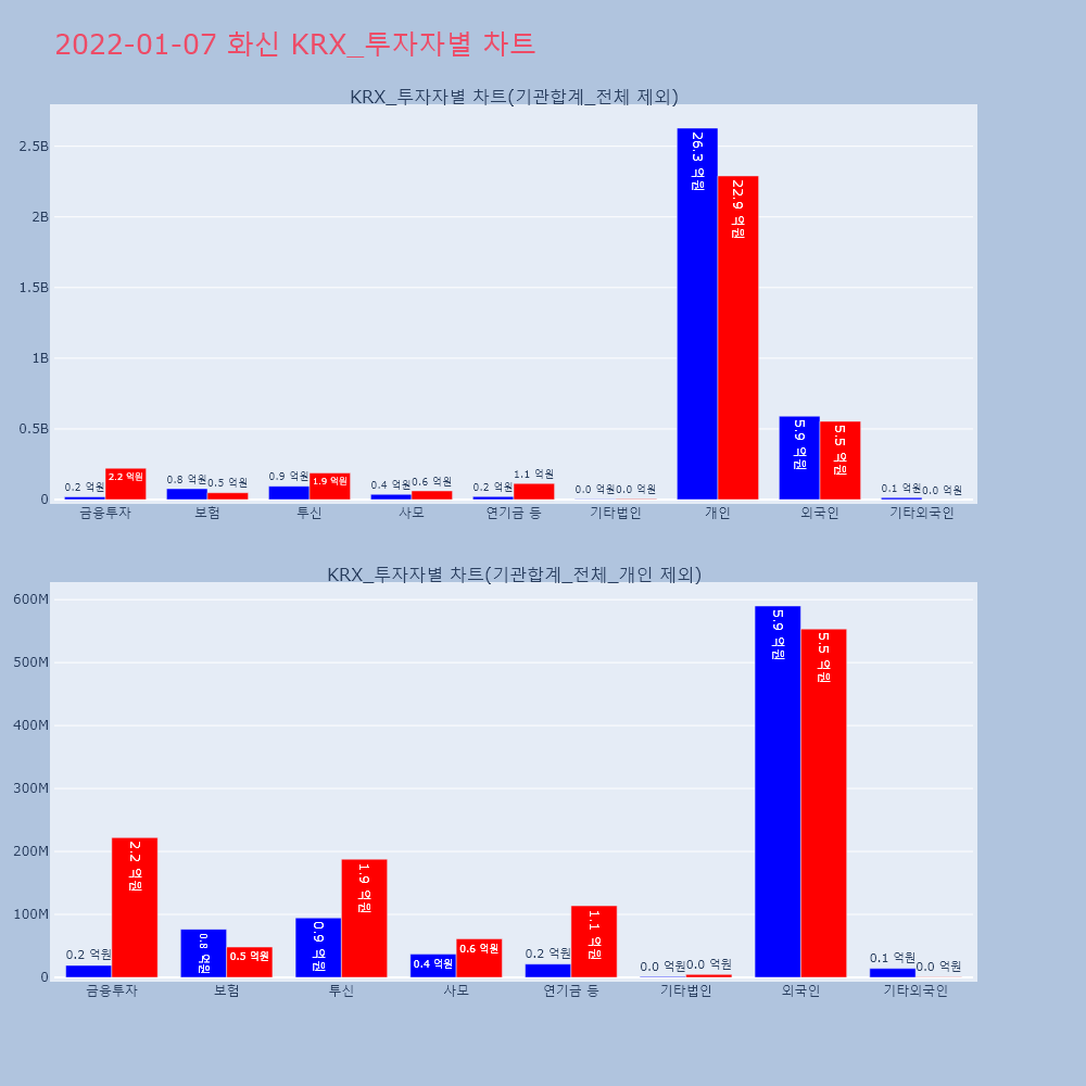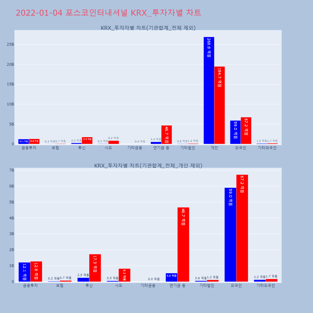 | 투자기관 | 거래량_매도 | 거래량_매수 | 거래량_순매수 | 거래대금_매도 | 거래대금_매수 | 거래대금_순매수 |