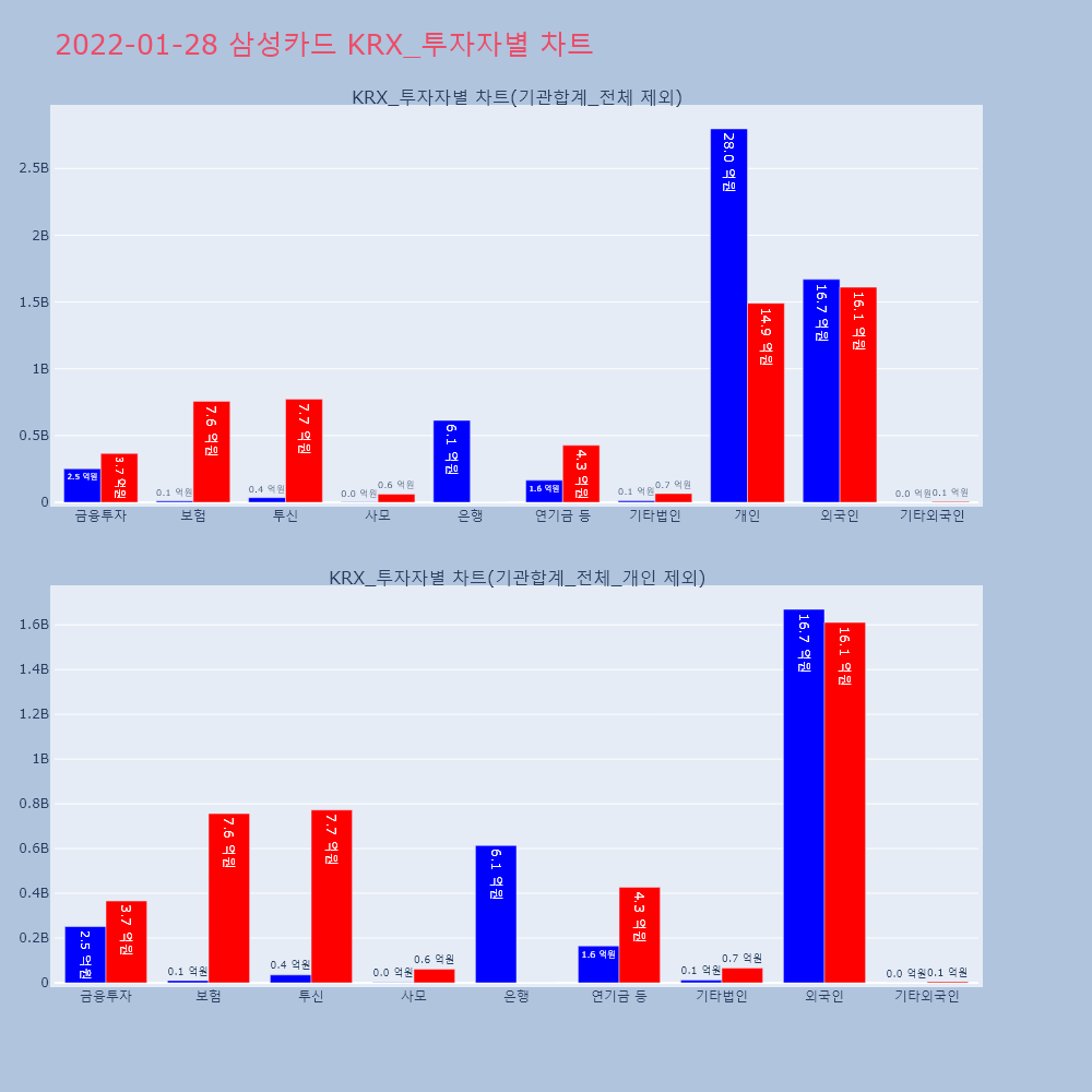 | 투신 | 11,299 | 8,714 | -2,585 | 1,815,614,000 | 1,397,134,000 | -418,480,000 |